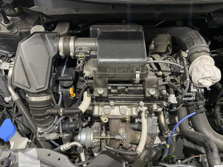 HKSではノーマル状態でのタービン作動状況を徹底的に分析することからチューニングをスタート。そこから見えてきたことは、このK14Cエンジンに関してはライトチューニングからタービン交換が有効というものでした。また試験データ(当社社内データ)からもターボを交換るだけで排圧や吸気温度の低減が得られたことがわかり、ECUのセッティング無しでも最大で6.3kW(8.6ps)&4.9N・m(0.5kgf・m)の向上が実現ました。