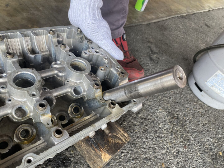 その後、シリンダーヘッドにバルブガイドを圧入するため、シリンダーヘッドの温度を上げます。