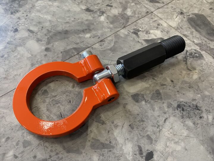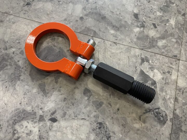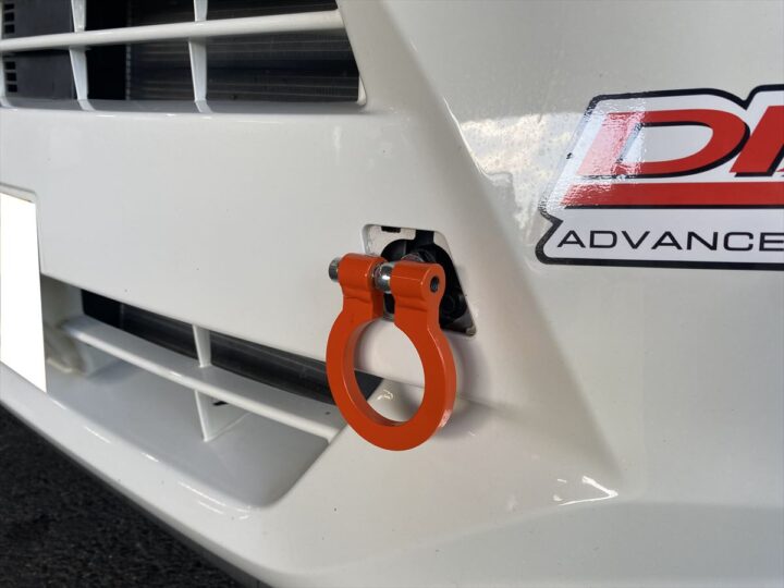 サーキット走行に必要な牽引フックも取り付け、準備万端です。