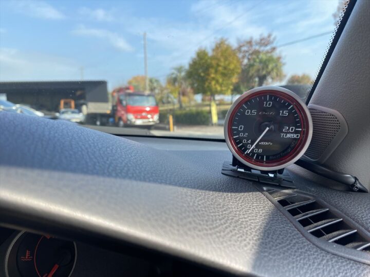 「Defi Racer Gauge N2+ ターボ計」は右側Aピラーの場所に配置。