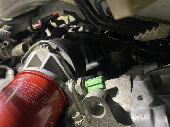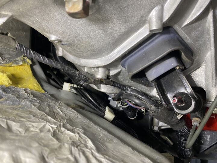 作業時、当初はエンジンルームからインマニなどを取り外して交換する予定でしたが、かなり大変な工程になると考え、下側からアプローチして交換する方法で作業を行いました。
