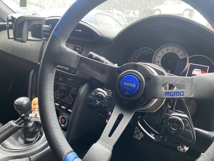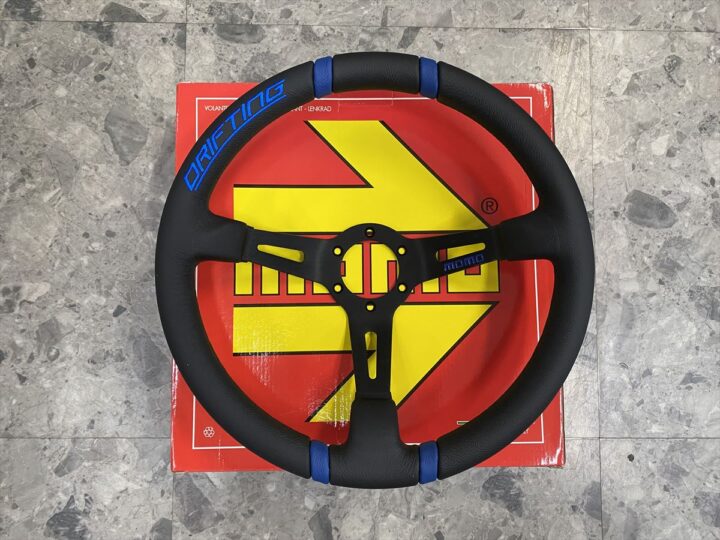 ステアリングは「momo OEMステアリング DRIFTING BKレザー/BKスポーク ブルーステッチ」を。