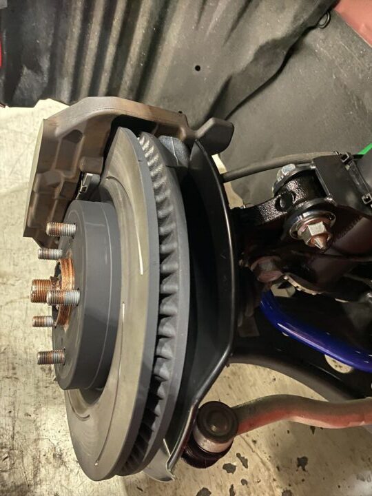 16インチ仕様車の、ブレーキローター・キャリパーサポート・バックプレート・ステアリングナックルを純正品で用意して交換しました。