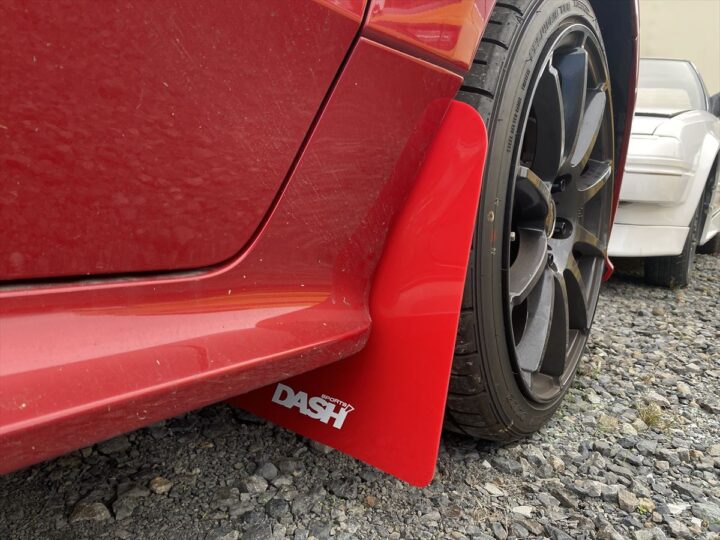 フラップ素材は軽量で耐久性のある赤ウレタン(3mm厚)赤を使用。各車種ごとの専用設計でボディにジャストフット。