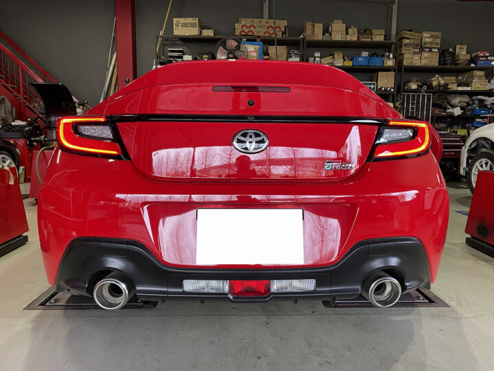 純正バンパーの切り欠きにあわせたΦ123大口径テールを採用。リヤビューをスポーティに演出します。