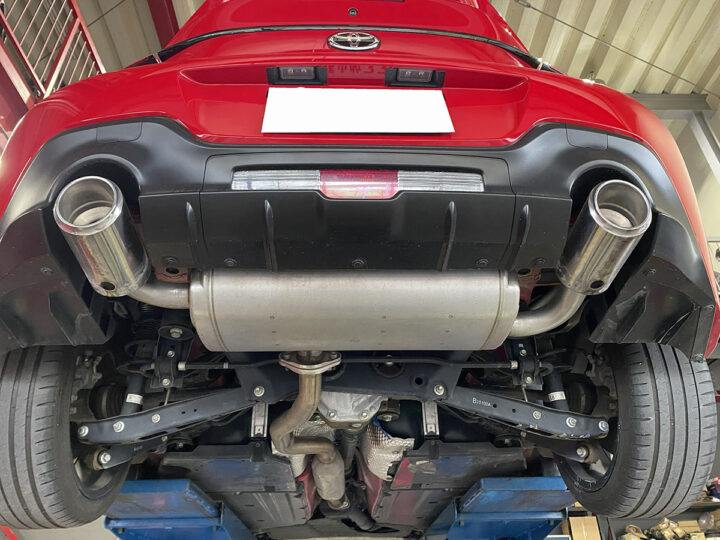 見えづらいですが、下から見るマフラーレイアウトがカッコいい。