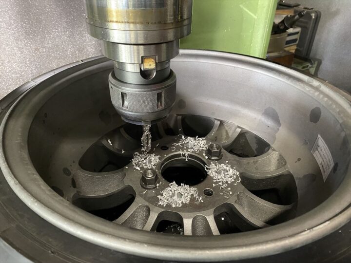 ホイールの種類によっては裏側に逃げがあるタイプもありますが、無いホイールだと純正ハブボルトをカットする場合が多いです。ただ、純正ハブボルトをカットしてしまうと、ワイドトレッドスペーサーを外して装着することができなくなります。そこで、ホイール裏側にハブボルトの逃げ加工をすることで干渉をクリアできます!!
