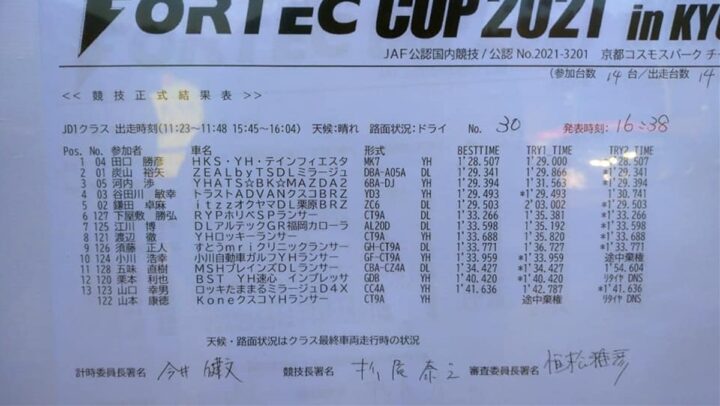 投稿日: 2021-03-14総合結果 ◇全日本ダートトライアル選手権 第1戦 ◆京都コスモスパーク [総合結果] ■JD1 2位 炭山裕矢 A05A 1st time:1’29.866 2st time:1’29.341 2本目タイムアップしましたが、田口選手のタイムに届かなかった!! ■JD2 ■JD3 ■続きを読む