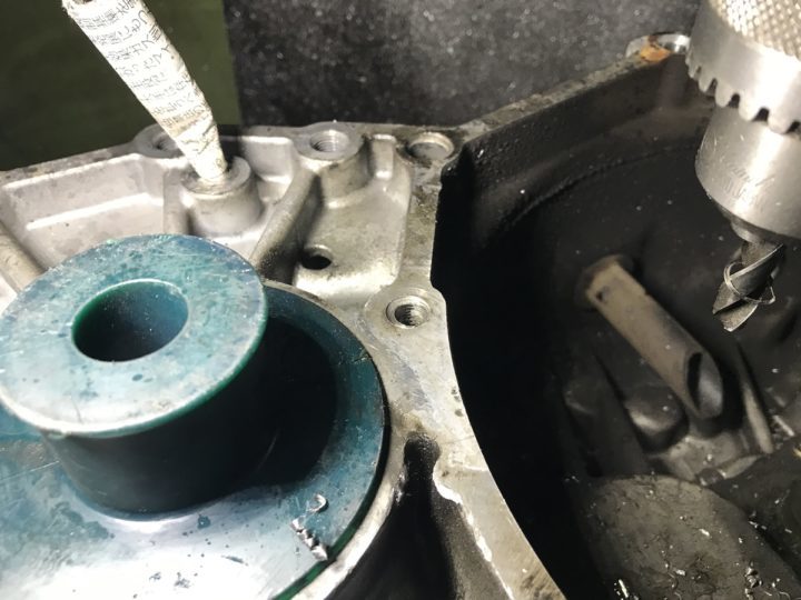 ミッションケースの方に折れて刺さったままのボルトを、NCフライスに固定し慎重に丁寧に取り除きました。