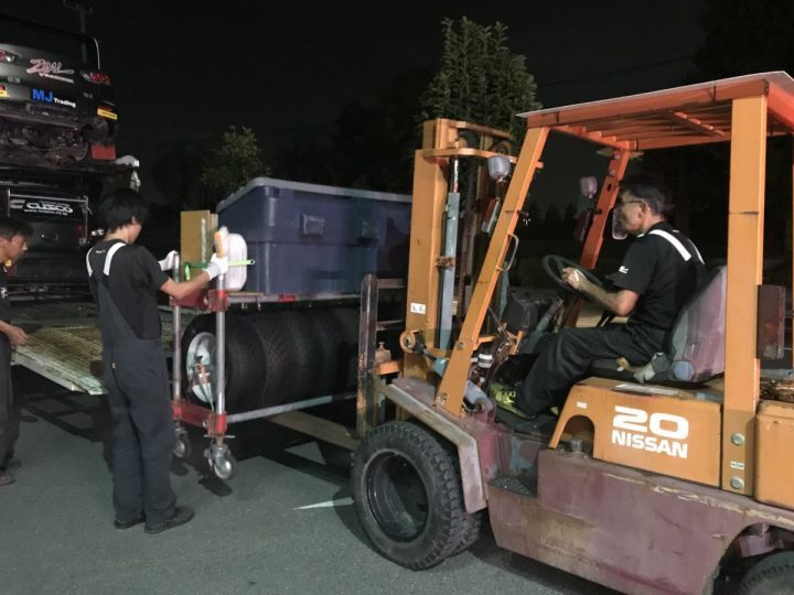 お店で積み込むときはフォークリフトがあるのでいいのですが、現地では皆様のお力を借りて積み下ろしをしています。